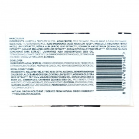 Hajfesték: Laureth-4, Propylene Glycol, Aqua (Water), PEG-2 Oleamine, Ethanolamine, Oleic Acid, P-Phenylenediamine, Aloe Barbadensis Leaf Juice, Hamamelis Virginiana Leaf Extract, Betula Alba Leaf Extract, Echinacea Angustifolia Root Extract, Juglans Regia Leaf Extract, Rheum Officinale Stem Extract, Cinchona Calisaya Bark Extract, Limnanthes Alba Seed Oil, 2-Amino-3-Hydroxypyridine, P-Aminophenol, Tetrasodium Glutamate Diacetate, 4-Chlororesorcinol, P-Methylaminophenol Sulfate, Cetrimonium Chloride, Sodium Metabisulfite, Glycerin.