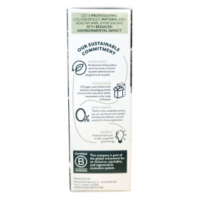 A csomagolás újrahasznosított anyagokból készül, csökkentett papírfelhasználással. Újrazárható flakonjai lehetővé teszik a maradék, nem összekevert termék későbbi felhasználását. Olaszországban gyártva, 100% zöld energiával.