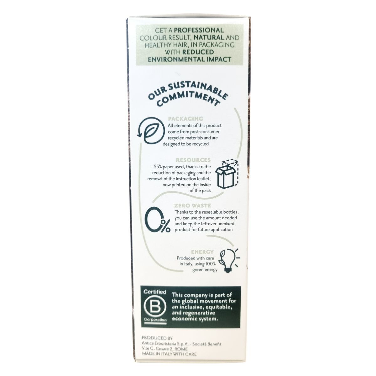 A csomagolás újrahasznosított anyagokból készül, csökkentett papírfelhasználással. Újrazárható flakonjai lehetővé teszik a maradék, nem összekevert termék későbbi felhasználását. Olaszországban gyártva, 100% zöld energiával.