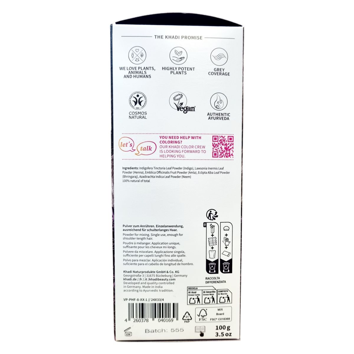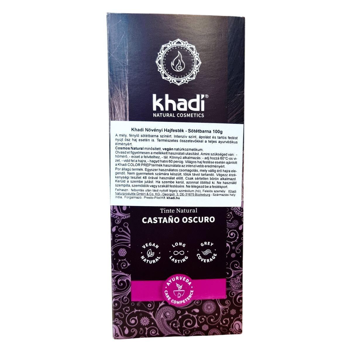 A khadi növényi hajfesték sötétbarna változata egy 100 g-os, por állagú, egyszeri használatra tervezett termék, amely elegendő vállig érő hajra. A készítményt Indiában, az autentikus ayurvédikus hagyományok szerint állítják elő, Németországban fejlesztik és minőségellenőrzik. A használathoz szükséges hőmérő, ecset és tál a pontos alkalmazáshoz. Használata egyszerű: 60 °C-os víz hozzáadása után a formulát a hajra kell felvinni, majd 60 percig hagyni hatni. A termék intenzív, tartós színt és ápolást biztosít, különösen akkor, ha a világos hajon előzetes Khadi COLOR PREP-kezelést alkalmaznak. A hajfesték szürke haj fedésére is alkalmas, miközben teljes ayurvédikus élményt nyújt, tisztán növényi eredetű összetevőkkel. A termék alkalmas vegetáriánus és vegán életmódot követők számára, nem tartalmaz szintetikus anyagokat. A használati utasítást figyelmesen kövesse, ügyelve az ajánlott elővigyázatosságokra, például érzékenységi tesztre és a festékpor belélegzésének kerülésére.