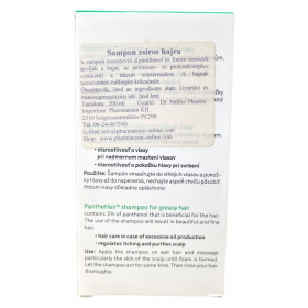 A PantheHair® sampon zsíros hajra finom tisztító anyagokat és panthenolt tartalmaz, amelyek ápolják a hajat és csökkentik a túlzott zsírtermelést. Az aminosav- és proteinkomplex támogatja a haj egészségét, természetes fényt biztosítva a hajnak. A sampon hatékonyan ápolja a fejbőrt, segít enyhíteni a viszketést, és tisztán tartja a hajat. Alkalmazása során a haj könnyen kezelhető és friss érzetet ad. A termék 200 ml-es kiszerelésben kapható, és a használati utasítást követve kellemes ápolást biztosít a zsíros haj számára.