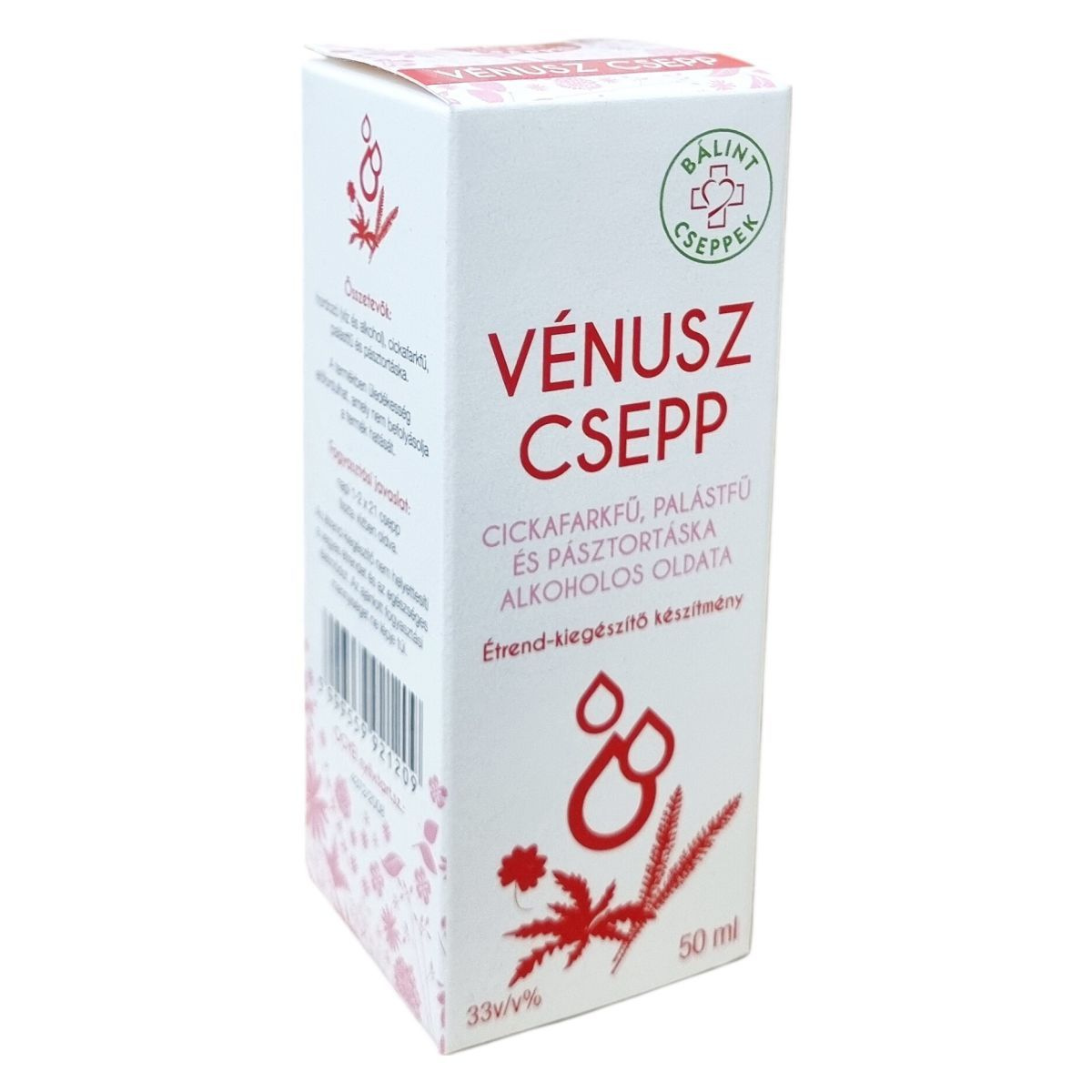 A Vénusz Csepp 33 térfogatszázalékos alkoholt tartalmazó oldat, amely cickafarkfűből, palástfűből és pásztortáskából készül. A cickafark illóolajat, azon belül azulént tartalmaz, a palástfű tanninokat, míg a pásztortáska flavonoidokat. A termékben üledékesség előfordulhat, ami nem befolyásolja a készítmény minőségét és hatását. Nettó térfogata 50 ml, amelyet a Herbárium 2000 Kft. magyarországi székhelyén gyártanak.