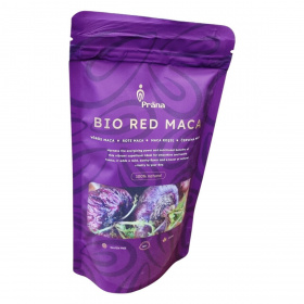 A Bio Red Maca főként Peruból származó zselatinizált vörös maca por, amely egy sokoldalúan felhasználható szuperélelmiszer. Jellegzetes földes és enyhén diós ízének köszönhetően turmixok, sütemények és italok ízvilágát gazdagíthatja, élénk színével pedig színesebbé teheti ezeket. A termék bio minősítésű, vegán és gluténmentes, azonban előállítása során nyomokban előfordulhat földimogyoró, diófélék és szezámmag jelenléte. Az energia- és tápérték-adatok alapján számos tápanyagot tartalmaz, így hozzájárulhat a szervezet természetes támogatásához. A por felhasználásával változatos és tápláló étel- és italreceptek készíthetők.