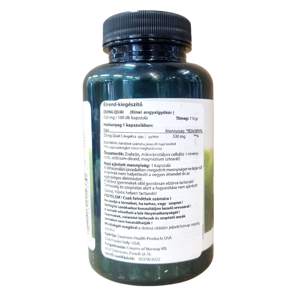 Dong Quai (kínai angyalgyökér) tartalmú étrend-kiegészítő kapszula, amely kapszulánként 530 mg növényi eredetű hatóanyagot tartalmaz a hölgyek egészségének támogatására.