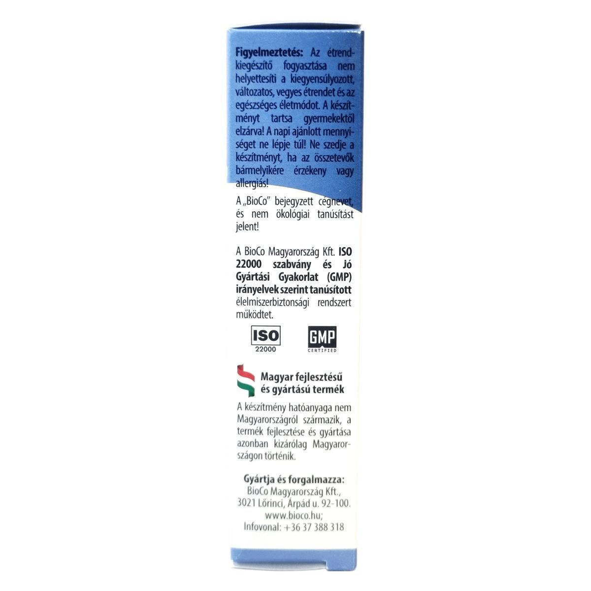 Az étrend-kiegészítő fogyasztása nem helyettesíti a kiegyensúlyozott, változatos, vegyes étrendet és az egészséges életmódot. A készítményt tartsa gyermekektől elzárva! A napi ajánlott mennyiséget ne lépje túl! Ne szedje a készítményt, ha az összetevők bármelyikére érzékeny vagy allergiás! A „BioCo” bejegyzett cégnevet, és nem ökológiai tanúsítást jelent!