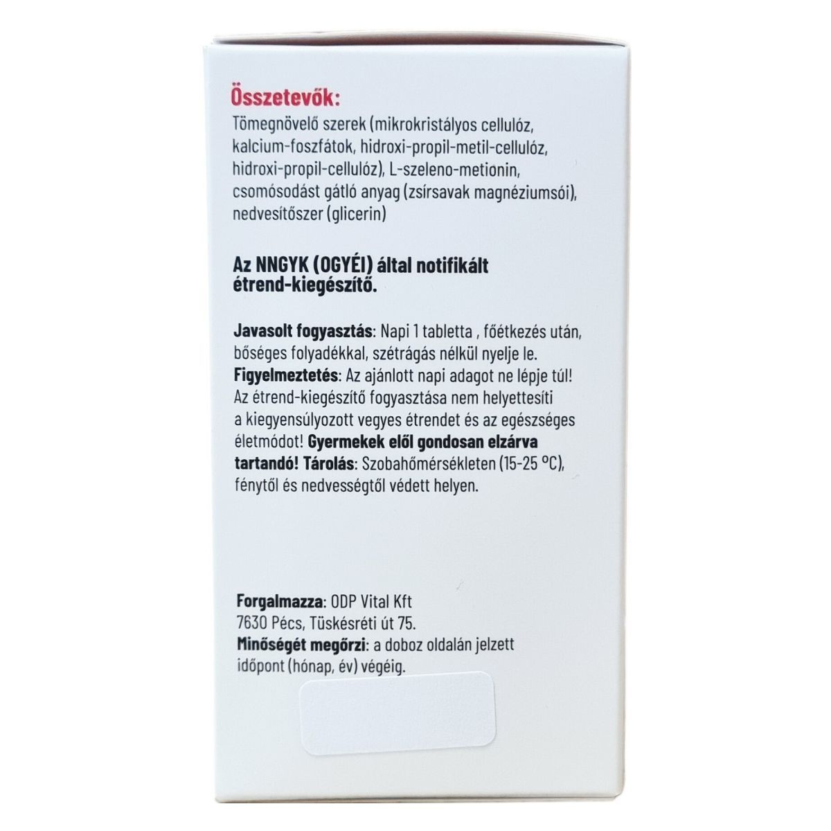 Szelén (szerves kötésű L-szeleno-metioninból) 100 µg