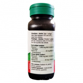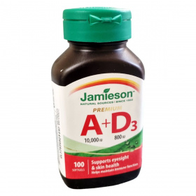 A Jamieson A+D3 vitamin étrend-kiegészítő lágy zselatin kapszula formájában érhető el, amely 10,000 IU A-vitamint és 800 IU D3-vitamint tartalmaz. Az A-vitamin hozzájárulhat a nyálkahártyák és a bőr normál állapotának fenntartásához, valamint a normál látás fenntartásához. A D-vitamin segíthet az egészséges csontozat és fogazat fenntartásában, valamint a kalcium és a foszfor normál felszívódásában és hasznosulásában. A termék nem tartalmaz keményítőt, glutént, laktózt, mesterséges színezékeket vagy ízesítőket, így különböző étrendi igényekhez is alkalmazkodhat.