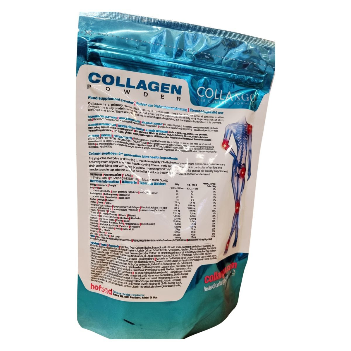 A kollagén a kötőszövet elsődleges fehérjéje, amely az állati fehérje mennyiségének közel 30%-át teszi ki. Fontos szerepet játszik a bőr, porc és csontok kohéziójában, rugalmasságában és regenerációjában. A Collango Collagen Powder a második generációs kollagén peptideket alkalmazza, amelyek hozzájárulhatnak a sportolók és aktív életmódot folytatók ízületi egészségének megőrzéséhez, valamint az életkor előrehaladtával a mozgékonyság fenntartásához. A termék sztíviát tartalmaz édesítőszerként és kiegészítő vitaminokat és cinket is biztosíthat a szervezet számára.