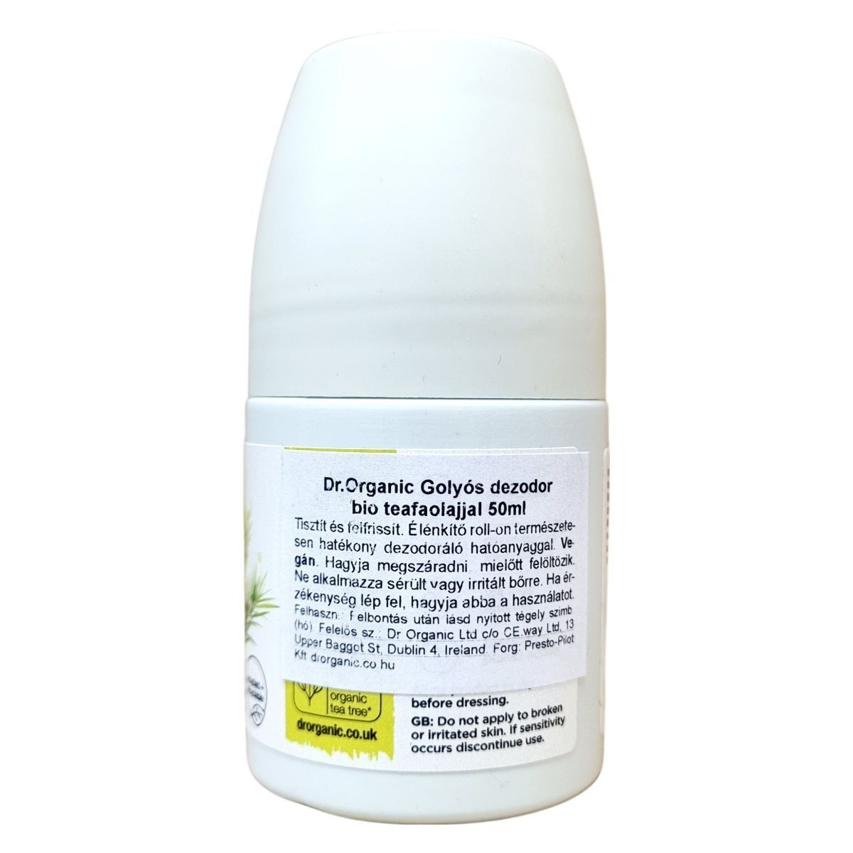 Ez a dr.organic® Tea Tree golyós dezodor 50 ml-es kiszerelésben tisztítja és felfrissíti a bőrt, miközben hatékony természetes dezodoráló hatóanyagokat tartalmaz. A termék vegán, és fő aktív összetevője a bio teafaolaj, amely ismert antibakteriális és frissítő hatásáról. Használata egyszerű, roll-on formában érkezik, felvitel után hagyni kell megszáradni, mielőtt öltözködünk. Az összetétel 81,93%-ban bio és 98,5%-ban természetes eredetű anyagokat tartalmaz, így támogatja a természetes bőrápolást. A termék biztonsági előírásai értelmében kerülni kell a sérült vagy irritált bőrfelületre való felvitelt, és ha bőrirritáció lép fel, a használatot abba kell hagyni. A gyártás Belgiumban történt, a csomagoláson magyar nyelvű használati utasítás is található.