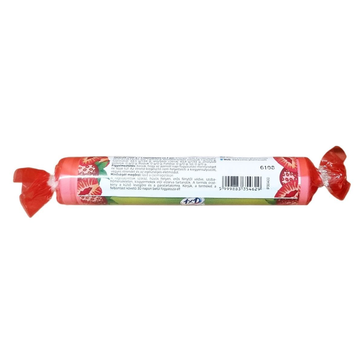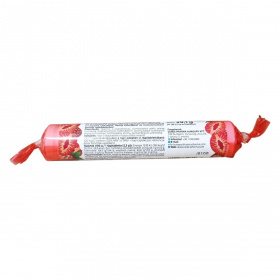 Eper ízű étrend-kiegészítő rágótabletta szőlőcukorral.