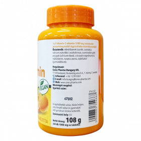 C-vitamint tartalmazó narancs ízű étrend-kiegészítő rágótabletta szorbittal és édesítőszerrel.