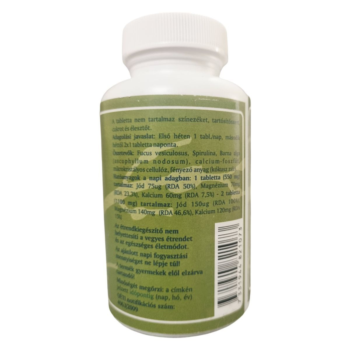 Az Alga tabletta három természetes összetevőt tartalmaz: ascophyllum nodosum, Spirulina és Fucus vesiculosus. Ezeknek az algáknak magas a természetes jódtartalma, amely nélkülözhetetlen a pajzsmirigy hormonok előállításához, valamint a szervezet anyagcseréjéhez és az energiatermelő folyamatokhoz. A készítmény hozzájárulhat a haj, a köröm és a bőr egészségének megőrzéséhez. A kalcium segíti a vázrendszer ásványianyag pótlását, míg a magnézium támogathatja a szívizomzat rugalmasságát és működését. A termék fogyasztását dr. Bérczy Judit belgyógyász, endokrinológus javasolja.