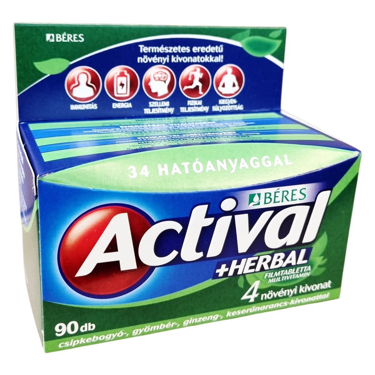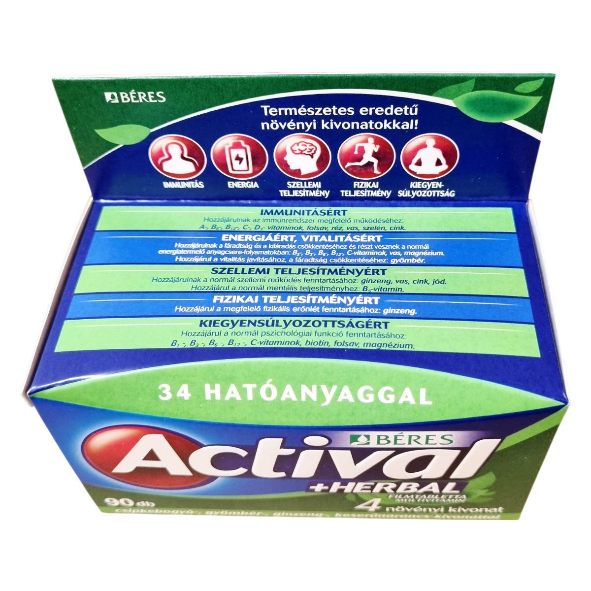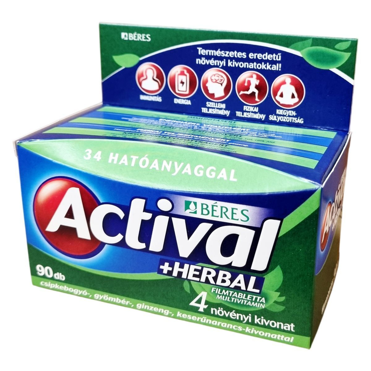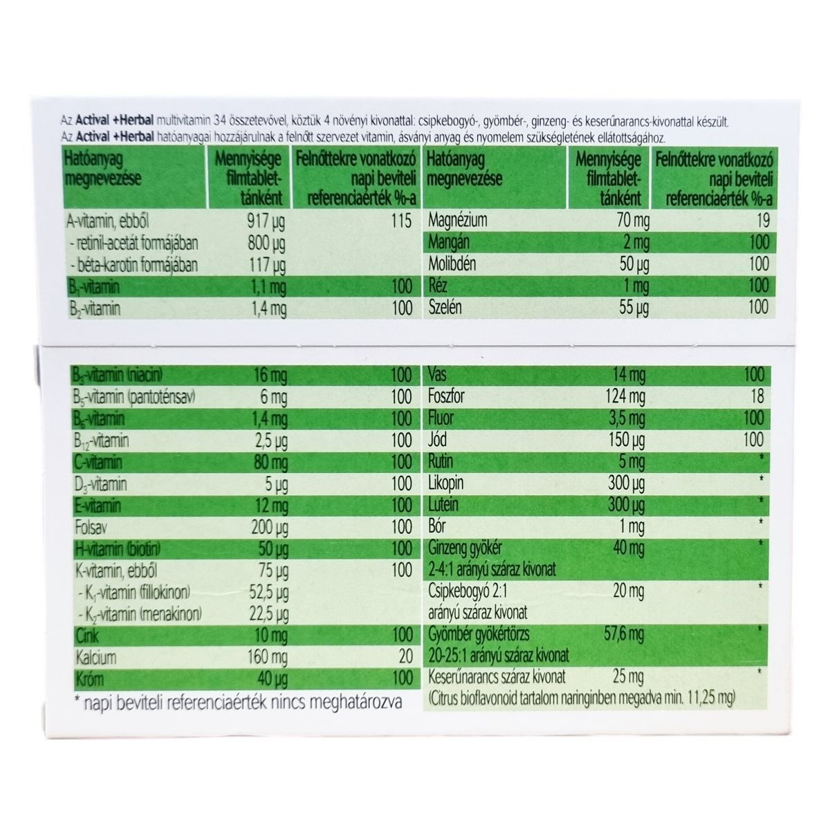 Az Actival +Herbal multivitamin filmtabletta 34, a szervezet számára fontos hatóanyagot tartalmaz.