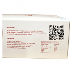 MGN-3 Arabinoxylan compound, mikrokristályos cellulóz, kukoricakeményítő, maltodextrin, trikálcium-foszfát.