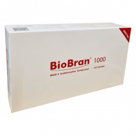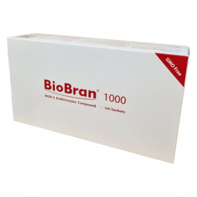 A BioBran 1000 egy Japánban gyártott étrend-kiegészítő, amely rizskorpából készül, és enzimatikusan fejlesztették ki az optimális felszívódás érdekében. A termék poliszacharidokat, proteoglikánokat, például arabinoxilánt és más hemicellulózokat tartalmazhat. A BioBran 1000 vegetáriánusok számára is alkalmas, és nem tartalmaz genetikailag módosított összetevőket. A terméket az EU-ba a DHD(Europe) Ltd. importálja. A termék 105 tasakot tartalmaz, mindegyik tasak 1000 mg MGN-3 Arabinoxylan vegyületet tartalmaz. A termék használata során fontos, hogy ne lépje túl az ajánlott adagot, és ne használja a változatos étrend helyettesítésére.