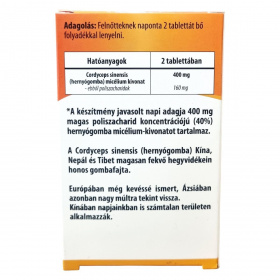 Cordyceps sinensis (hernyógomba) micélium kivonat: 400 mg / 2 tabletta