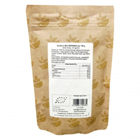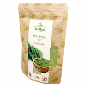 A BioMenü BIO Moringa por egy 100%-ban bio, natúr moringa levél őrlemény, amely 125 grammos kiszerelésben érhető el, és vegán étrendbe is beilleszthető.
