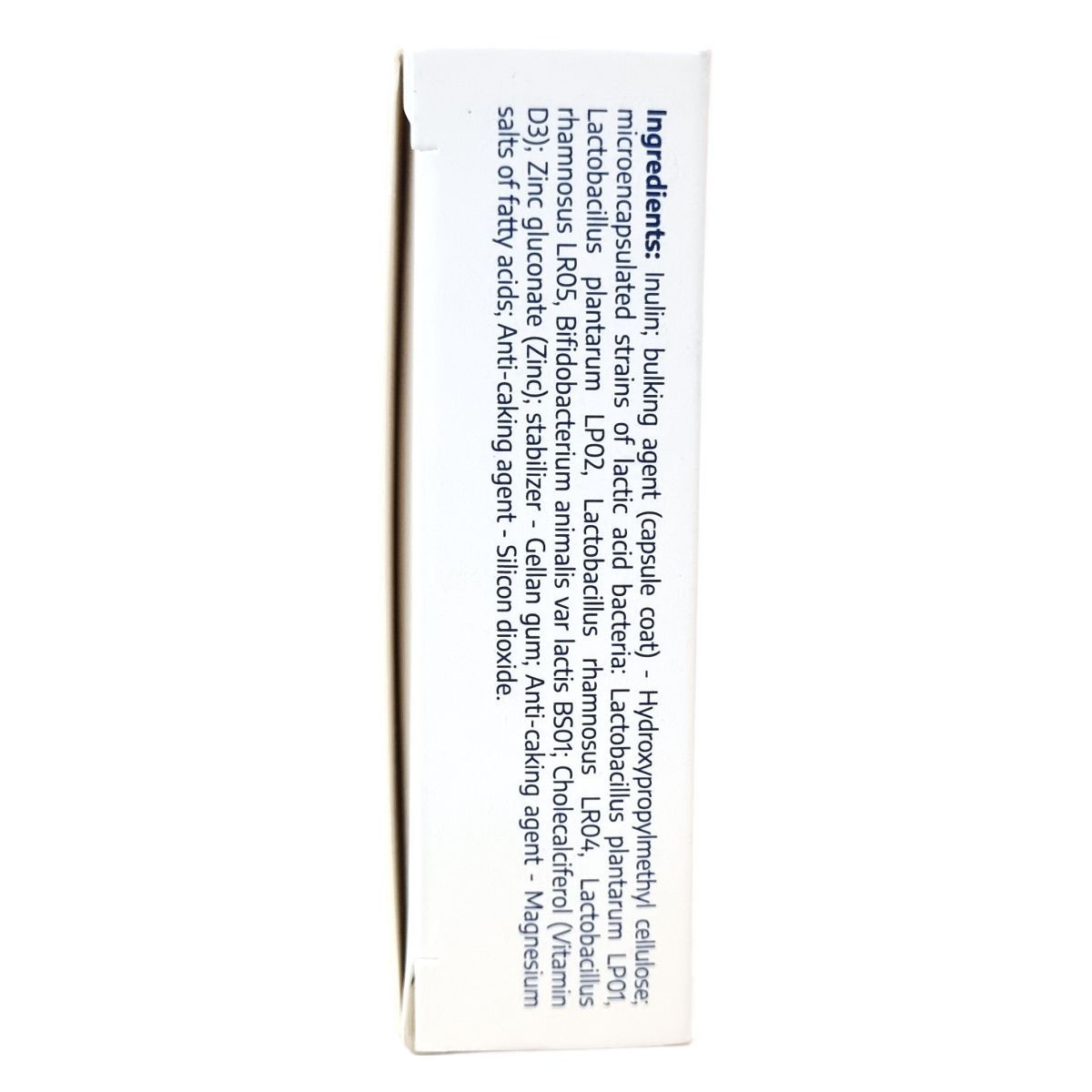 Inulin, hidroxipropil-metil-cellulóz (kapszulabevonat), mikrokapszulázott tejsavbaktériumtörzsek: Lactobacillus plantarum LP01, Lactobacillus plantarum LP02, Lactobacillus rhamnosus LR04, Lactobacillus rhamnosus LR05, Bifidobacterium animalis var lactis BS01, kolekalciferol (D3-vitamin), cink-glukonát (cink), gellan gumi (stabilizátor), zsírsavak magnéziumsói (csomósodásgátló), szilícium-dioxid (csomósodásgátló)