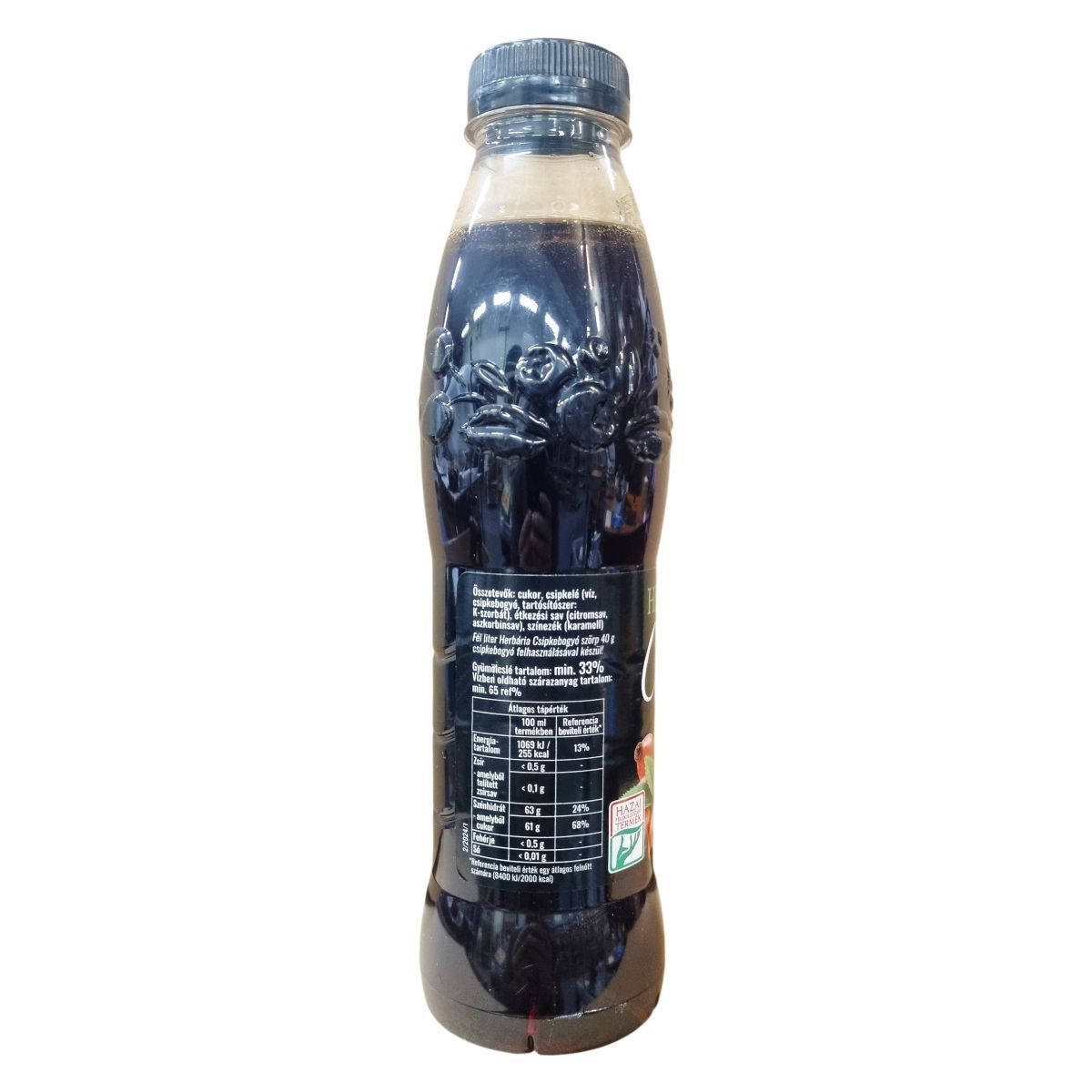 A Herbária Csipkebogyó szörp fél literes kiszerelésben érkezik, mely 40 g csipkebogyó felhasználásával készül. A gyümölcstartalma minimum 33%, vízben oldható szárazanyag tartalma pedig legalább 65 refraktométerszázalék. A termékre 50 Ft visszaváltható betétdíj vonatkozik. Az energia- és tápérték adatok referencia beviteli értékek alapján készültek egy átlagos felnőtt számára (8400 kJ / 2000 kcal).