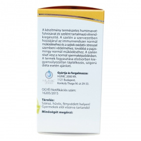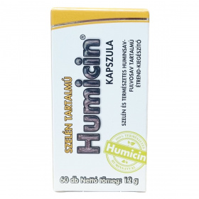 A Humicin® Szelén tartalmú kapszula egy természetes összetevőkből álló étrend-kiegészítő, amely szelént és huminsav-fulvosavat tartalmaz. A szelén hozzájárulhat az immunrendszer normál működéséhez, a sejtek oxidatív stresszel szembeni védelméhez, valamint a pajzsmirigy normál működéséhez, továbbá részt vehet a normál spermaképződés folyamatában. A terméket különösen kiegyensúlyozatlan táplálkozás vagy szigorú diéta esetén javasolt használni. A kapszula 60 darabos kiszerelésben érhető el és napi két alkalommal ajánlott szedni étkezések előtt, bőséges folyadékkal. A termék nem helyettesíti a változatos étrendet és az egészséges életmódot. Tárolását száraz, hűvös és fényvédett helyen kell biztosítani, valamint kerülni kell, hogy gyermekek hozzáférhessenek. A kapszula összetevői között szerepel mikrokristályos cellulóz, hidroxipropil-cellulóz alapú kapszula, Humicin por (huminsav-fulvosav), csomósodást gátló zsírsavak magnéziumsói és nátrium-szelenit.