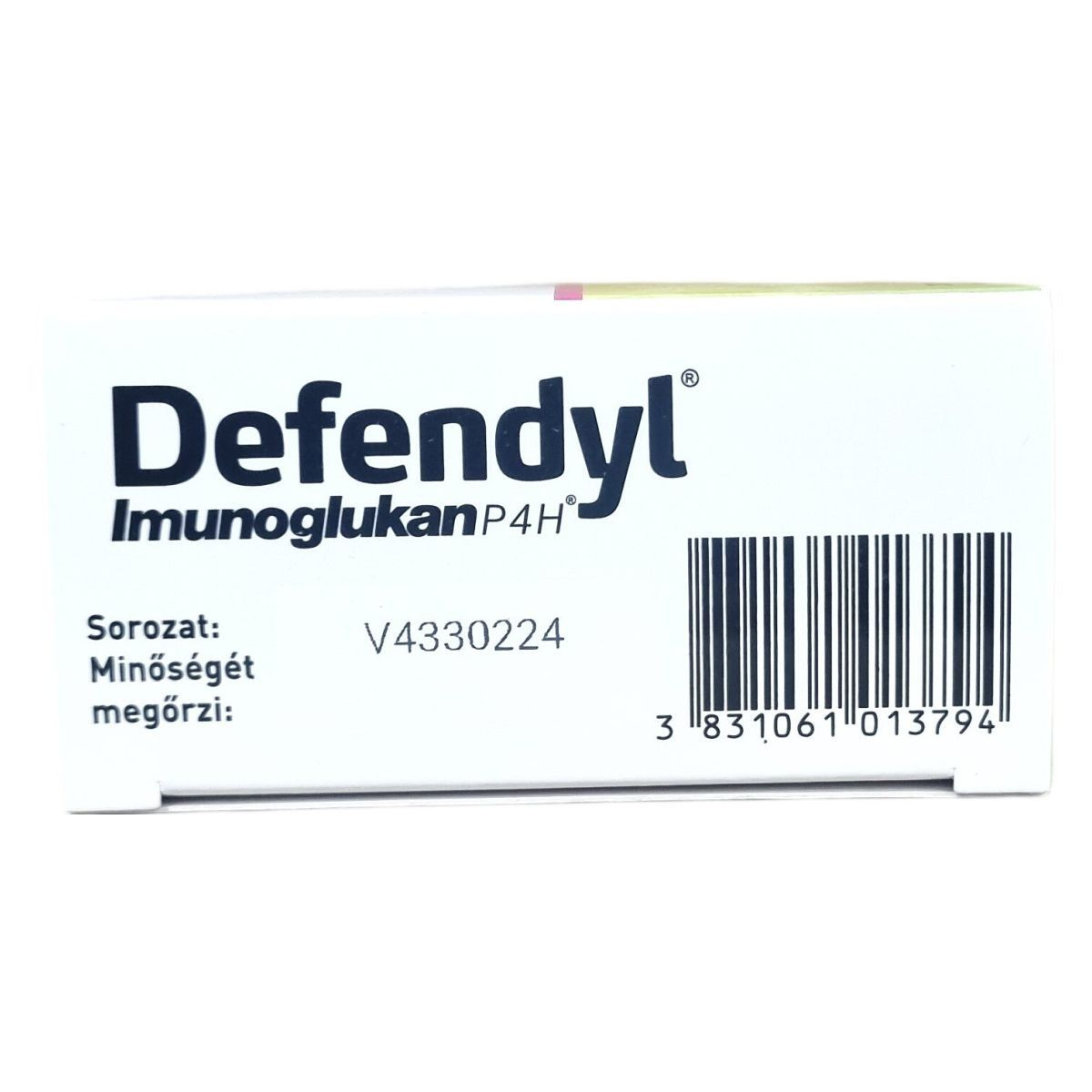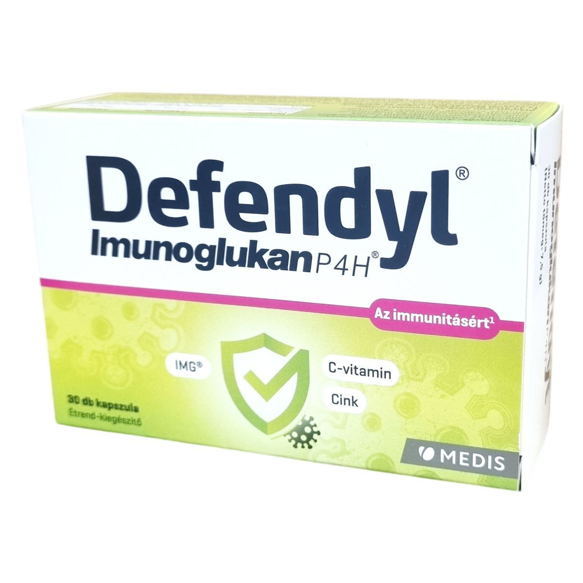 A Defendyl Imunoglukan P4H® kapszula 30 darabos kiszerelésű készítmény, mely IMG®-et (laskagombából izolált pleurán), C-vitamint és cinket tartalmaz. A vitaminok a napi beviteli referenciaérték szerint segíthetik az immunrendszer normál működését. A termék vegetáriánusok számára is alkalmas. Az adagoláskor ügyelni kell arra, hogy a kapszulákat egészben kell lenyelni, és az ajánlott adagot nem szabad túllépni. 6 év alatti gyermekeknek nem javasolt a készítmény használata.