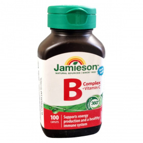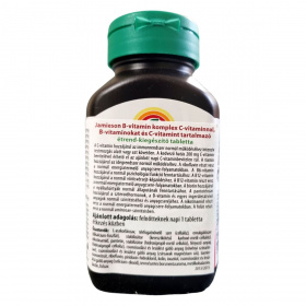 A Jamieson B Complex + Vitamin C étrend-kiegészítő tabletta egy olyan termék, amely B-vitaminokat és C-vitamint tartalmaz, amelyek hozzájárulhatnak az energia termelés támogatásához és az immunrendszer egészséges működéséhez. A C-vitamin különösen fontos lehet az immunrendszer normál működéséhez intenzív testmozgás alatt vagy azt követően. A termék nem tartalmaz GMO-t, glutént, laktózt, ízesítőket vagy tartósítószereket, így különböző étrendi igényekhez is alkalmazkodhat. A termék 100 tablettát tartalmaz, és felnőtteknek napi 1 tabletta fogyasztása ajánlott étkezés közben.