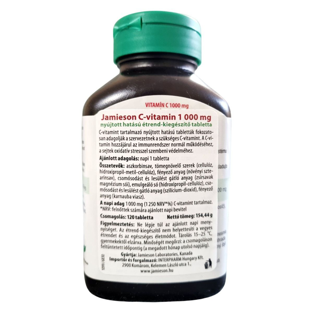 A Jamieson C-vitamin 1000 mg nyújtott hatású étrend-kiegészítő tabletta egy speciális időzített felszabadulású formula, amely fokozatosan adagolhatja a szervezet számára a szükséges C-vitamint. A C-vitamin hozzájárulhat az immunrendszer normál működéséhez és a sejtek oxidatív stresszel szembeni védelméhez. A termék nem tartalmaz cukrot, keményítőt, glutént, laktózt, mesterséges színezéket, ízesítőt vagy tartósítószert, így vegetáriánus étrendbe is beilleszthető. A tablettákat 15–25 °C között, gyermekektől elzárva kell tárolni. A gyártó Jamieson Laboratories, a forgalmazó pedig az INTERPHARM Hungary Kft.