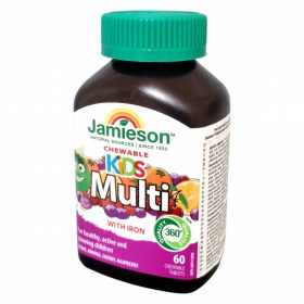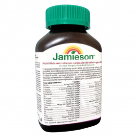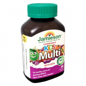 A Jamieson Kids Multi with Iron rágótabletta gondosan válogatott vitaminokat és ásványi anyagokat tartalmaz, melyek hozzájárulhatnak a gyermekek egészséges növekedéséhez és fejlődéséhez. A kalcium és a D-vitamin támogathatják a csontozat és a fogak normál fejlődését, a vas elősegítheti a normál vérképzést, míg a jód a kognitív funkciók fenntartásához járulhat hozzá. A gyümölcsös ízek megkönnyíthetik a napi vitaminbevitel kialakítását a gyermekek számára.
