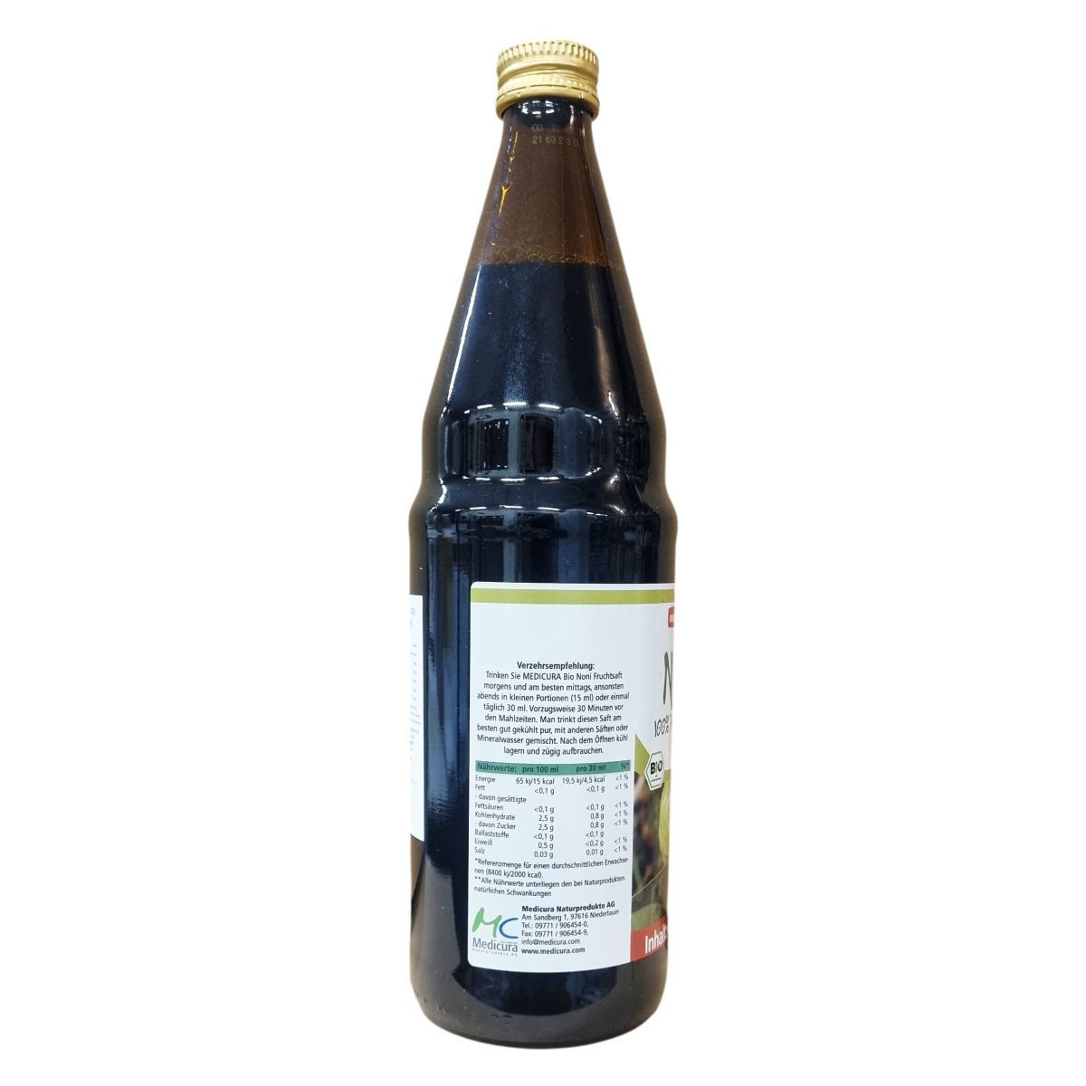 A Medicura Noni juice több mint 2000 éve ismert és használatos táplálékkiegészítő a dél-tengeri őslakosok körében. A noni gyümölcsöt a trópusi éghajlat és tápanyagban gazdag talaj biztosítja kiemelkedő minőségben. A termék kizárólag ellenőrzött ökológiai gazdálkodásból származó noni gyümölcsből készült, és megfelel a bio és vegán étrendi irányelveknek. Javasolt adagolása napi kétszeri 15 ml vagy egyszeri 30 ml, amelyet ajánlott étkezések előtt fél órával fogyasztani önmagában vagy más italokkal keverve. Hidegen való fogyasztása ajánlott a maximális élvezet érdekében. Felbontás után hűtőben kell tárolni, valamint a minőség megőrzése érdekében a lehető leghamarabb el kell fogyasztani. A termék energia- és tápértékadatai természetes ingadozásokat mutathatnak, ami jellemző a természetes termékekre.