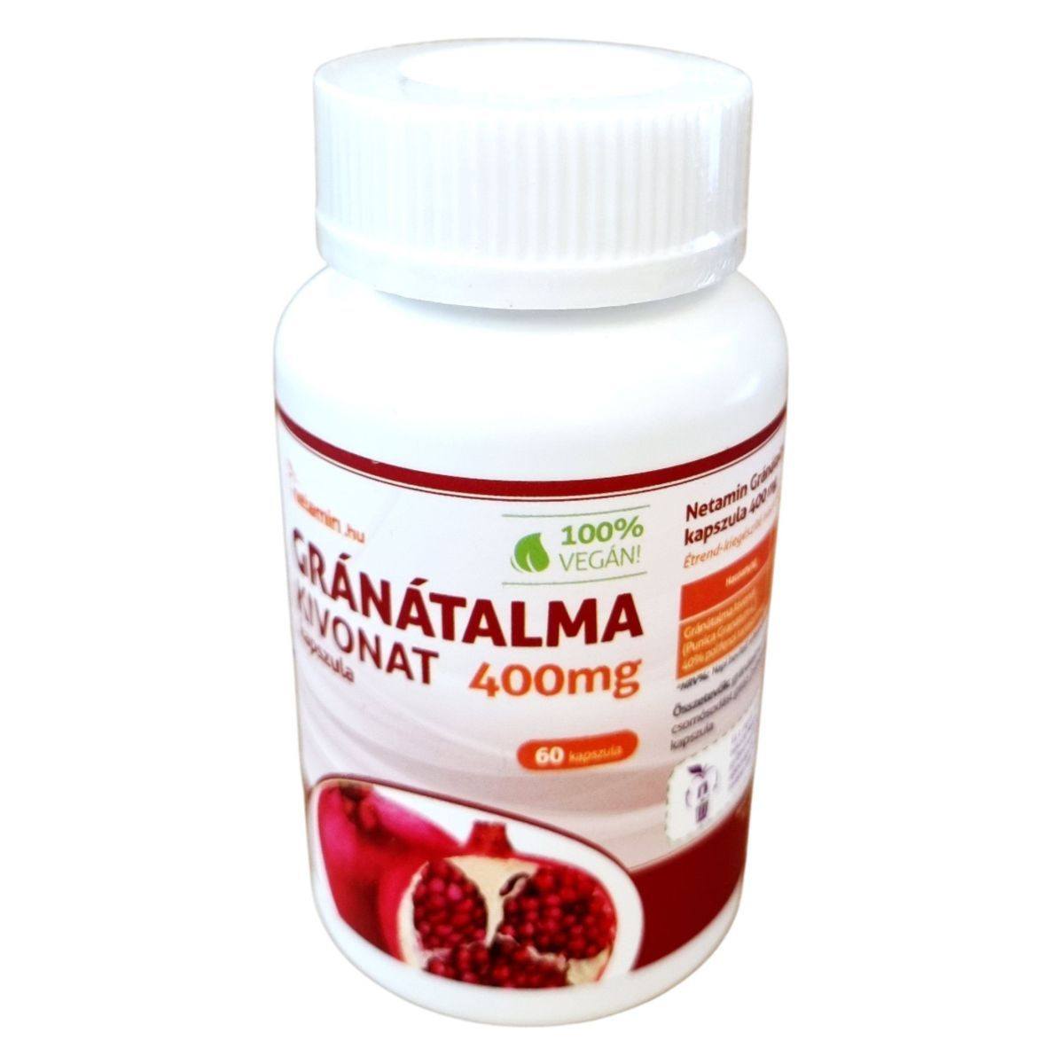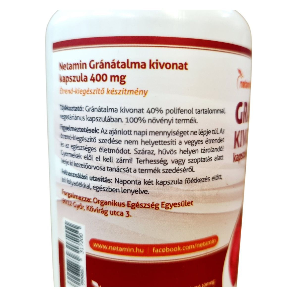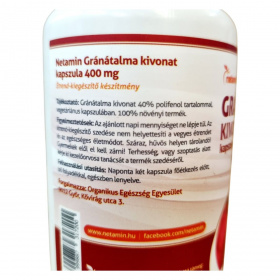 A Netamin Gránátalma kivonat kapszula 400 mg gránátalma kivonatot tartalmaz, amely 40% polifenol tartalommal rendelkezik. A termék 100% vegán, és hozzájárulhat az egészséges életmód támogatásához.