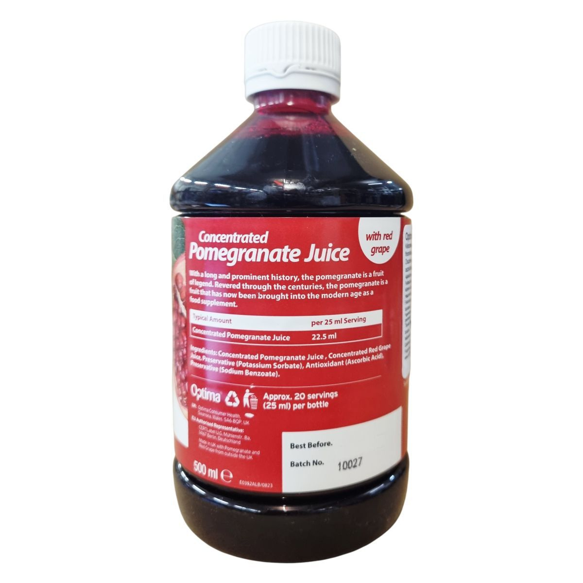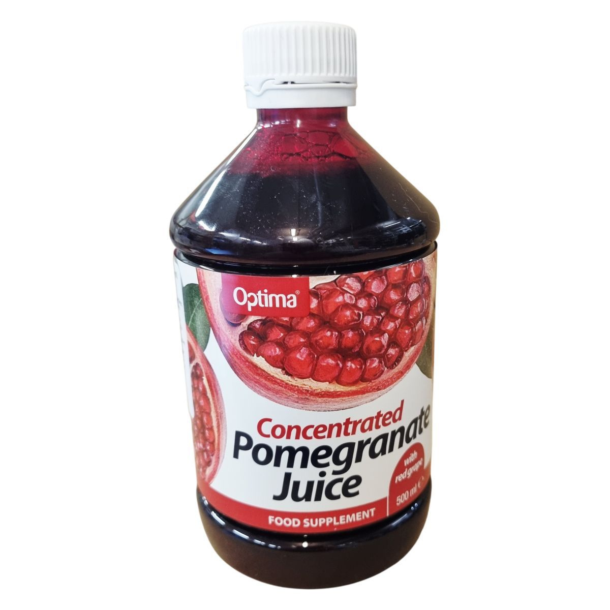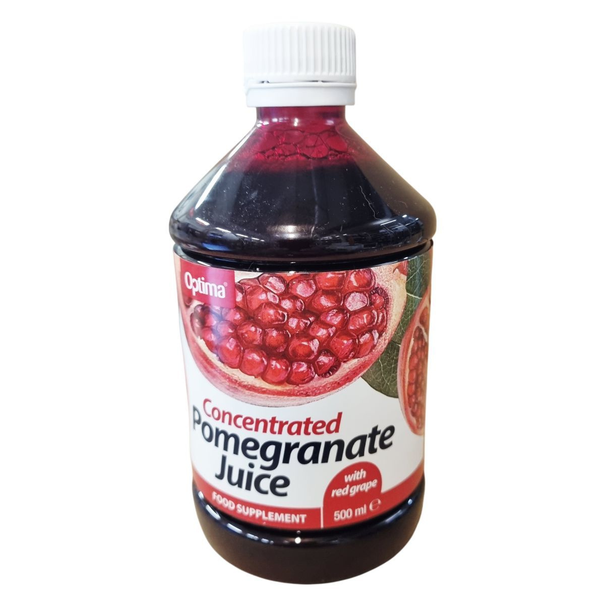 A gránátalma évszázadokon át legendás gyümölcsként ismert, amelyet ma étrend-kiegészítő formában kínálnak. Az Optima koncentrált gránátalma sűrítmény vörös szőlőlével készült és tartalmaz kálium-szorbátot, nátrium-benzoátot mint tartósítószert, illetve aszkorbinsavat antioxidánsként. A termék vegánok számára is alkalmas, és környezetbarát csomagolásban érkezik, megközelítőleg 20 adagot tartalmaz egy palack. A gránátalma és a vörös szőlő összetevői nem brit származásúak, míg a termék Nagy-Britanniában készül.