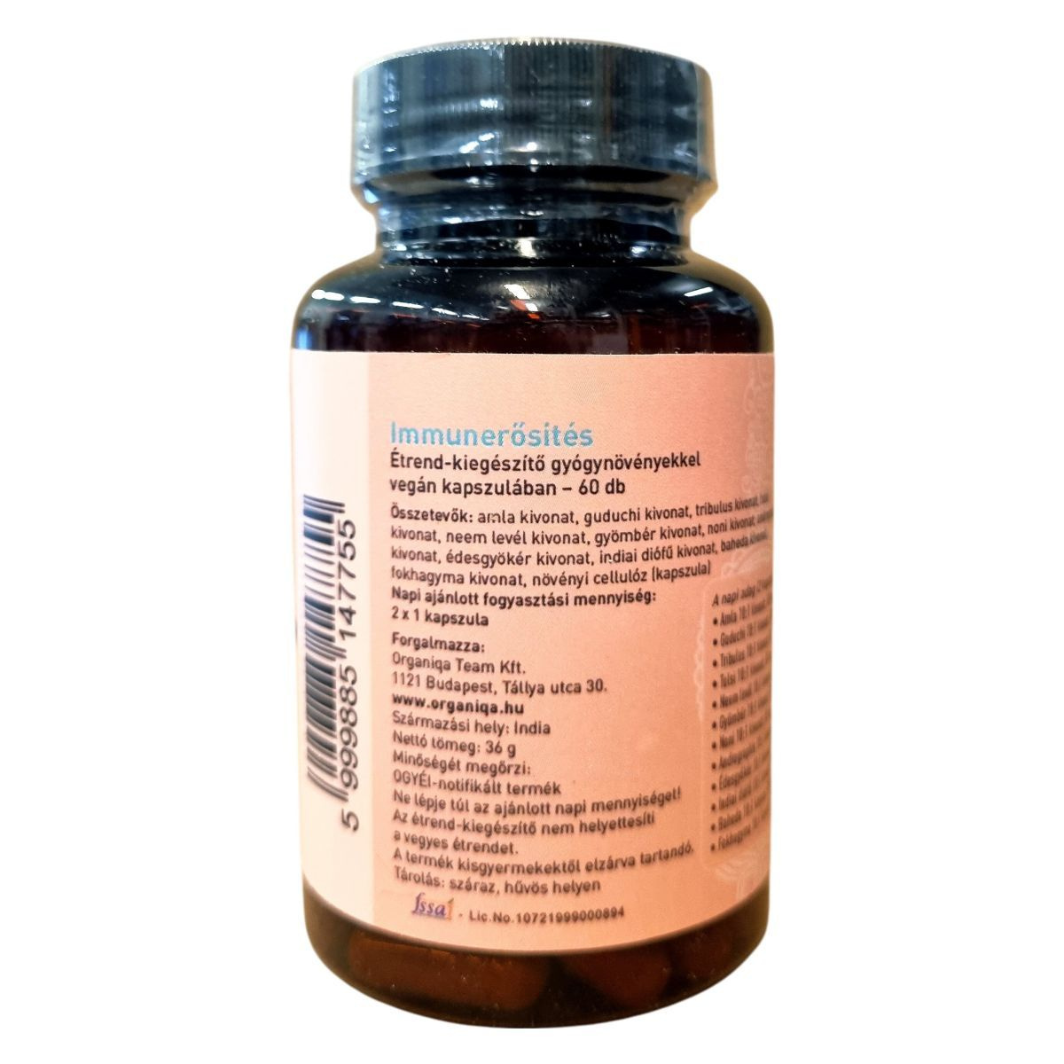 Az ORGANIQA balance egy indiai származású étrend-kiegészítő, amely 60 vegán kapszulát tartalmaz. A termék különféle gyógynövénykivonatokkal készülhet, mint például amla, guduchi, tulsi és neem levél, amelyek hozzájárulhatnak az immunrendszer támogatásához. A termék forgalmazója az Organiqa Team Kft., és az OGYÉI által notifikált. A kapszulák növényi cellulózból készülnek, így vegán étrendbe is beilleszthetők. A termék használata során fontos betartani az ajánlott napi mennyiséget, és ügyelni arra, hogy kisgyermekektől elzárva tartsuk.