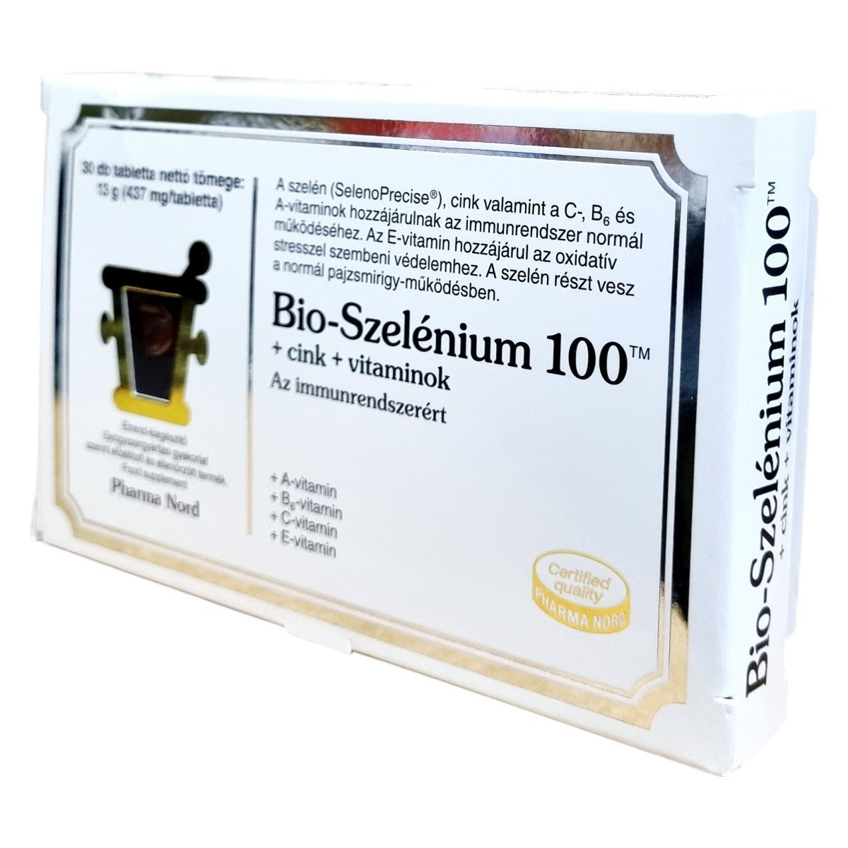 A Bio-Szelénium 100™ egy étrend-kiegészítő, amely szelént, cinket és különböző vitaminokat tartalmaz, mint például A-, B6-, C- és E-vitamin. Ezek az összetevők hozzájárulhatnak az immunrendszer normál működéséhez, az oxidatív stresszel szembeni védelemhez, valamint a normál pajzsmirigy-működéshez. A termék gyógyszergyártási gyakorlat szerint előállított és ellenőrzött, vegetáriánusok és vegánok is fogyaszthatják. A tabletták 30 darabos kiszerelésben kaphatók, és napi egy tabletta fogyasztása ajánlott étkezés közben.