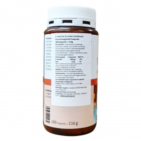C-vitamin + cink nyújtott felszívódással. A C vitamin mellet a cink is nagyon fontos a szervezet ellenálló képességének növeléséhez.