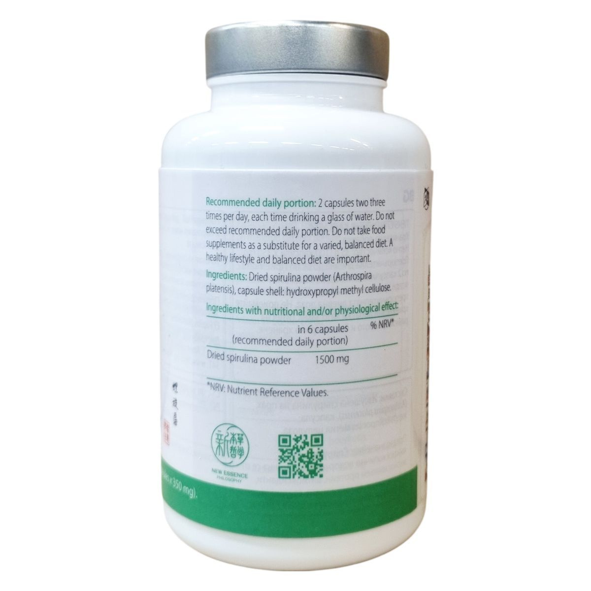 A Tiens Spirulina kapszulák szárított spirulina porból készülnek, amely hidroxi-propil-metil-cellulóz kapszula héjba van csomagolva. A termék kapszulánkénti mennyisége biztosítja az ajánlott hatóanyagot a napi adagban. Javasolt az adagolás pontos betartása, valamint a változatos táplálkozás és életmód fenntartása. A gyártás Spanyolországban történik, és a termék termékfelelősségi biztosítással rendelkezik.