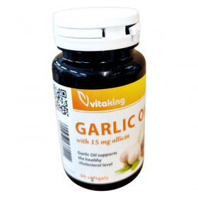 A Vitaking Garlic Oil egy étrend-kiegészítő, amely 90 gélkapszulát tartalmaz. A termék fő hatóanyaga a fokhagymaolaj, amely allicint biztosít. A fokhagyma hozzájárulhat a vér normál koleszterinszintjének és az egészséges vérnyomás fenntartásához, valamint segíthet fenntartani a légzőrendszer egészséges működését. A termék szójabab olajat, zselatin kapszulahéjat, nedvesítőszert (glicerin) és fokhagyma olajat tartalmaz. A termék használata során fontos, hogy a napi ajánlott mennyiséget ne lépjük túl, és a termék nem helyettesíti a vegyes étrendet és az egészséges életmódot. A terméket száraz, hűvös helyen, sugárzó hőtől és fénytől védve kell tárolni, gyermekek elől elzárva. A termék forgalmazója a Vitaking Kft., és az OGYÉI nyilvántartási száma 2861/2022.