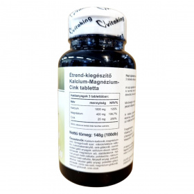 A Vitaking Calcium+ Magnesium+ Zinc tabletta három fontos ásványi anyagot tartalmaz, amelyek hozzájárulhatnak a csontok és az izmok normál működéséhez. A kalcium, magnézium és cink kombinációja támogathatja a szervezet ásványi anyag egyensúlyát.
