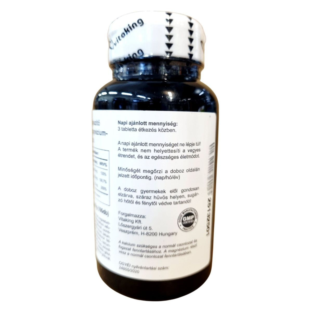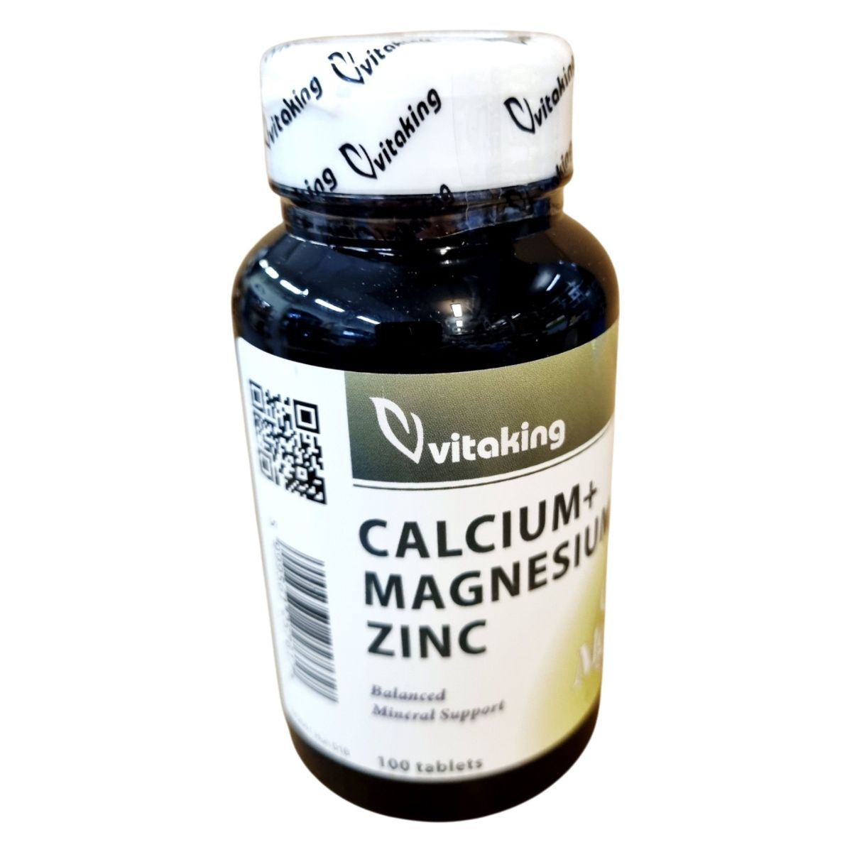 A Vitaking Calcium+ Magnesium+ Zinc étrend-kiegészítő három fontos ásványi anyagot tartalmaz, amelyek hozzájárulhatnak a szervezet optimális működéséhez. A kalcium segíthet a csontok és fogak egészségének fenntartásában, a magnézium támogathatja az izmok normál működését, míg a cink hozzájárulhat az immunrendszer normál működéséhez. A termék 100 tablettát tartalmaz, és a napi ajánlott mennyiség 3 tabletta. A termék összetevői között található a kalcium-karbonát, magnézium-oxid, cink-glükonát, valamint különböző stabilizátorok és bevonó anyagok. A termék minőségét a doboz oldalán jelzett időpontig őrzi meg, és fontos, hogy gyermekek elől elzárva, száraz, hűvös helyen tároljuk.