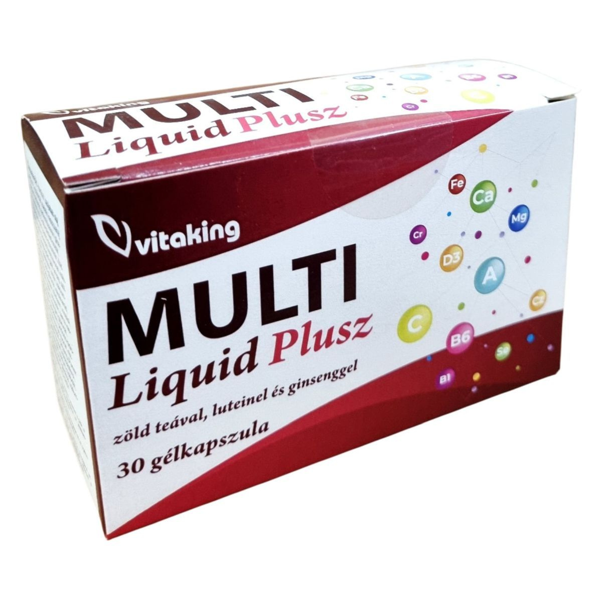 A Vitaking Multi Liquid Plusz egy komplex, zselatin kapszulás multivitamin-készítmény, amely vitaminokat, ásványi anyagokat és növényi kivonatokat egyaránt tartalmaz. A zöld tea, lutein és ginzeng kombinációja antioxidáns hatású összetevőkkel látja el a szervezetet, miközben a vitamin- és ásványianyag-tartalom hozzájárulhat az immunrendszer, az idegrendszer és az izomfunkció normál fenntartásához. A készítmény támogatást nyújthat a fáradtság és kimerültség csökkentésében, a sejtvédelemben és az általános vitalitás megőrzésében.