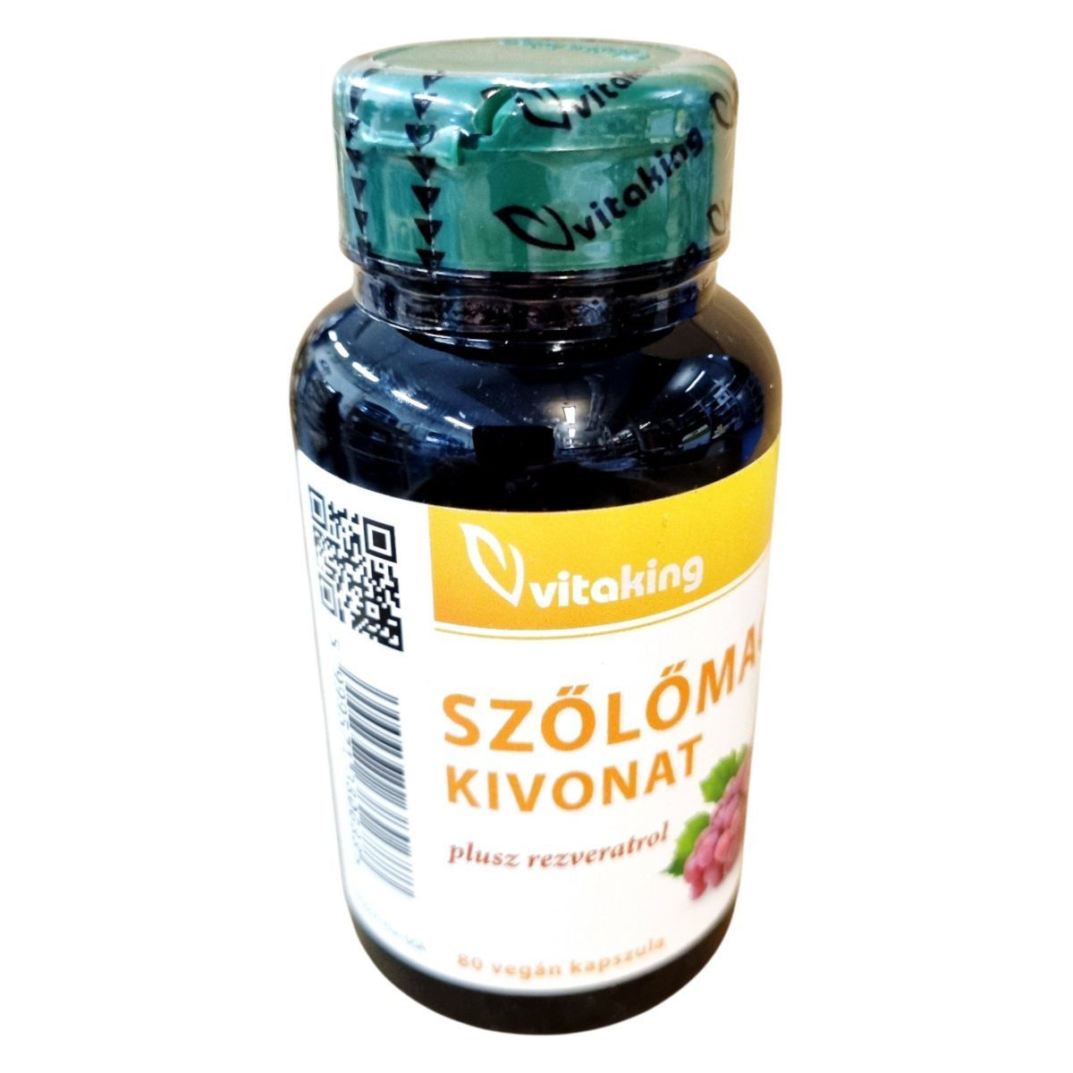 A Vitaking Szőlőmag Kivonat egy étrend-kiegészítő, amely 60 vegán kapszulát tartalmaz. A termék fő összetevői a szőlőmag kivonat és a rezveratrol, amelyek antioxidáns hatásukkal hozzájárulhatnak a szervezet védelméhez. A kapszulák polifenolokat és proantocianidokat tartalmaznak, amelyek támogathatják az egészség megőrzését. A termék vegán étrendbe illeszthető, és a napi ajánlott mennyiség 1 kapszula étkezés közben. Fontos, hogy a termék nem helyettesíti a vegyes étrendet és az egészséges életmódot, valamint gyógyszer szedése esetén orvosi felügyeletet igényelhet. A terméket száraz, hűvös helyen, gyermekektől elzárva kell tárolni.