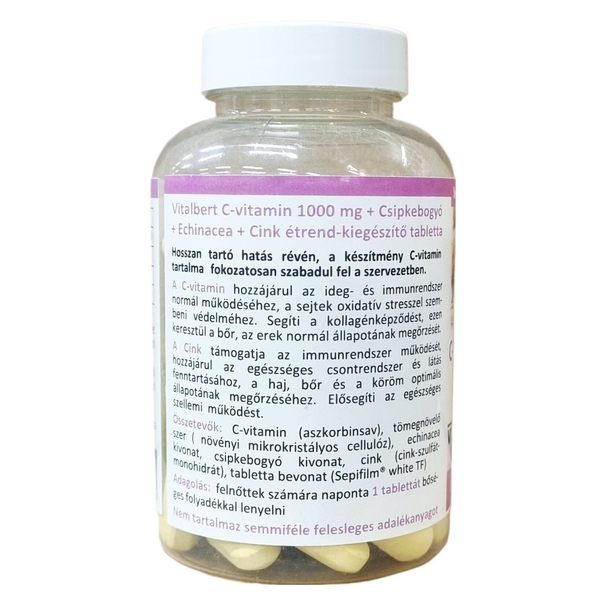 1000 mg C-vitamin retard tabletta csipkebogyóval, bíbor kasvirággal és cinkkel.