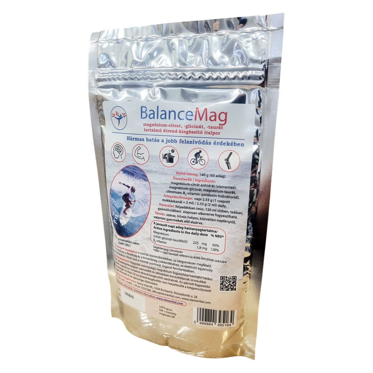 A BalanceMag italpor a magnézium három formáját – citrátot, glicinátot és taurátot – tartalmazza az optimális felszívódás érdekében. Emellett B6-vitaminnal egészül ki, mely a magnézium hasznosulását segítheti. A termék folyadékban, például vízben, teában vagy gyümölcslében oldódik jól. A napi ajánlott adag legalább 120 ml folyadékban alaposan elkeverve fogyasztható. A magnézium hozzájárulhat a normál izomműködéshez, idegrendszeri működéshez, fáradtság és kimerültség csökkentéséhez, elektrolit-egyensúly fenntartásához, továbbá részt vehet a csontozat és fogazat normál állapotának fenntartásában. A termék segédanyaga citromsav, amely az italpor jellegzetes ízét adhatja. Fontos figyelembe venni, hogy a termék szedése nem helyettesíti a változatos étrendet és az egészséges életmódot.