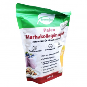 A benefitt Paleo Marhakollagén peptid egy sokoldalúan felhasználható, semleges ízű és illatú, alacsony molekulatömegű hidrolizált kollagén peptid. Kiváló biohasznosulással rendelkezik, és könnyen oldódik hideg és meleg italokban egyaránt. A termék adalékmentes, hozzáadott cukrot és tartósítószert nem tartalmaz, így természetes módon glutén- és laktózmentes. Az előállító üzem nem használ fel búzát, szóját, tojást, tej- és tejszármazékokat, így a termék különösen alkalmas azok számára, akik ezeket az összetevőket kerülik.