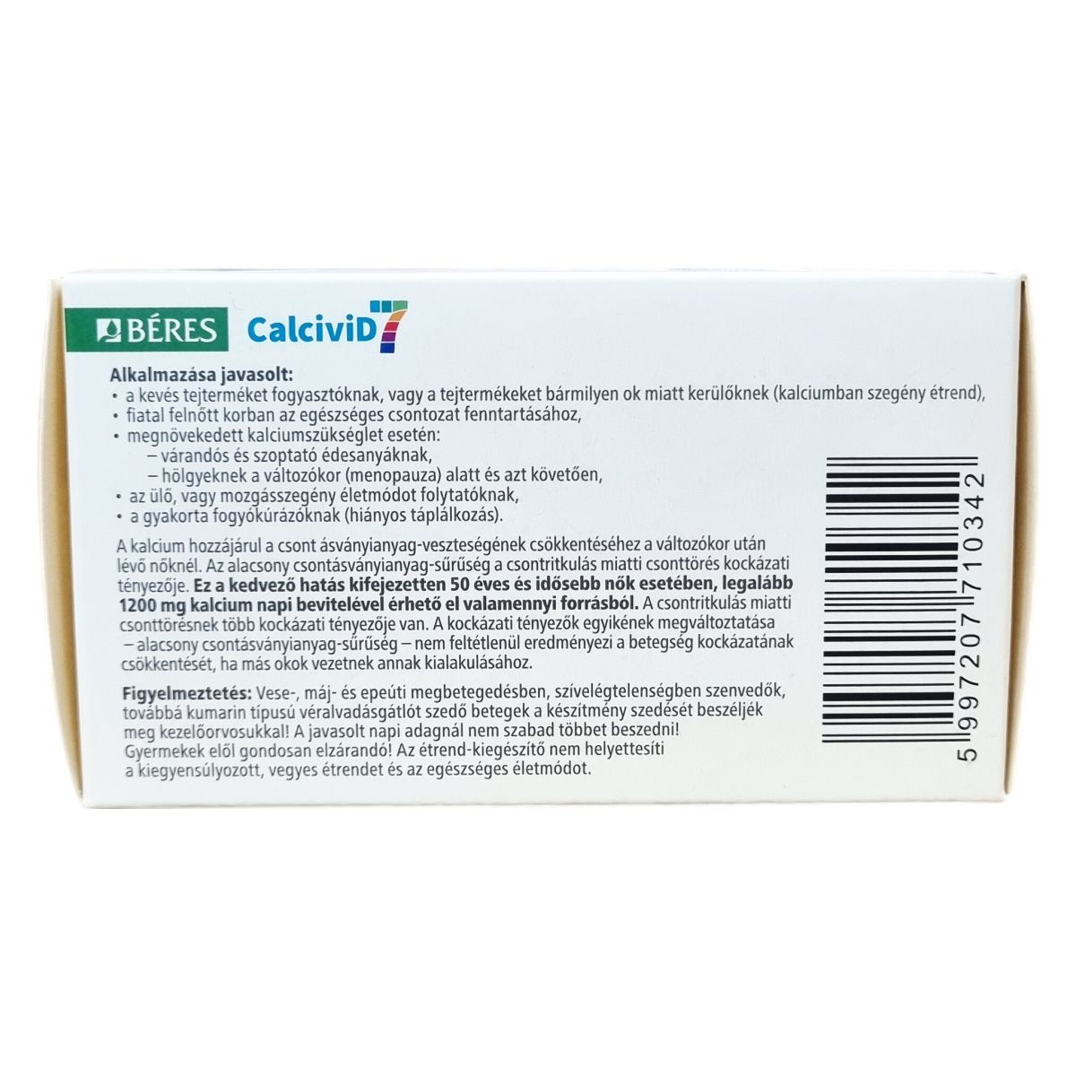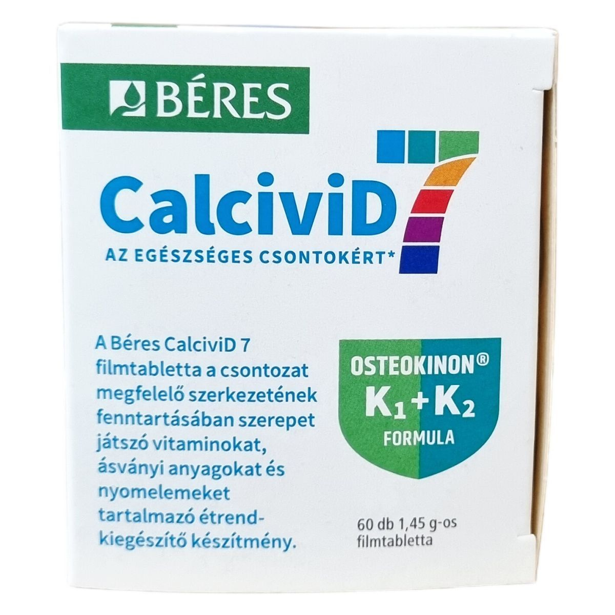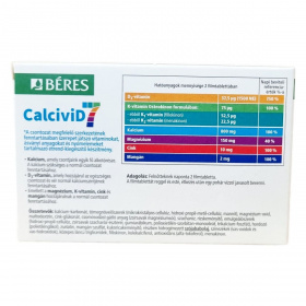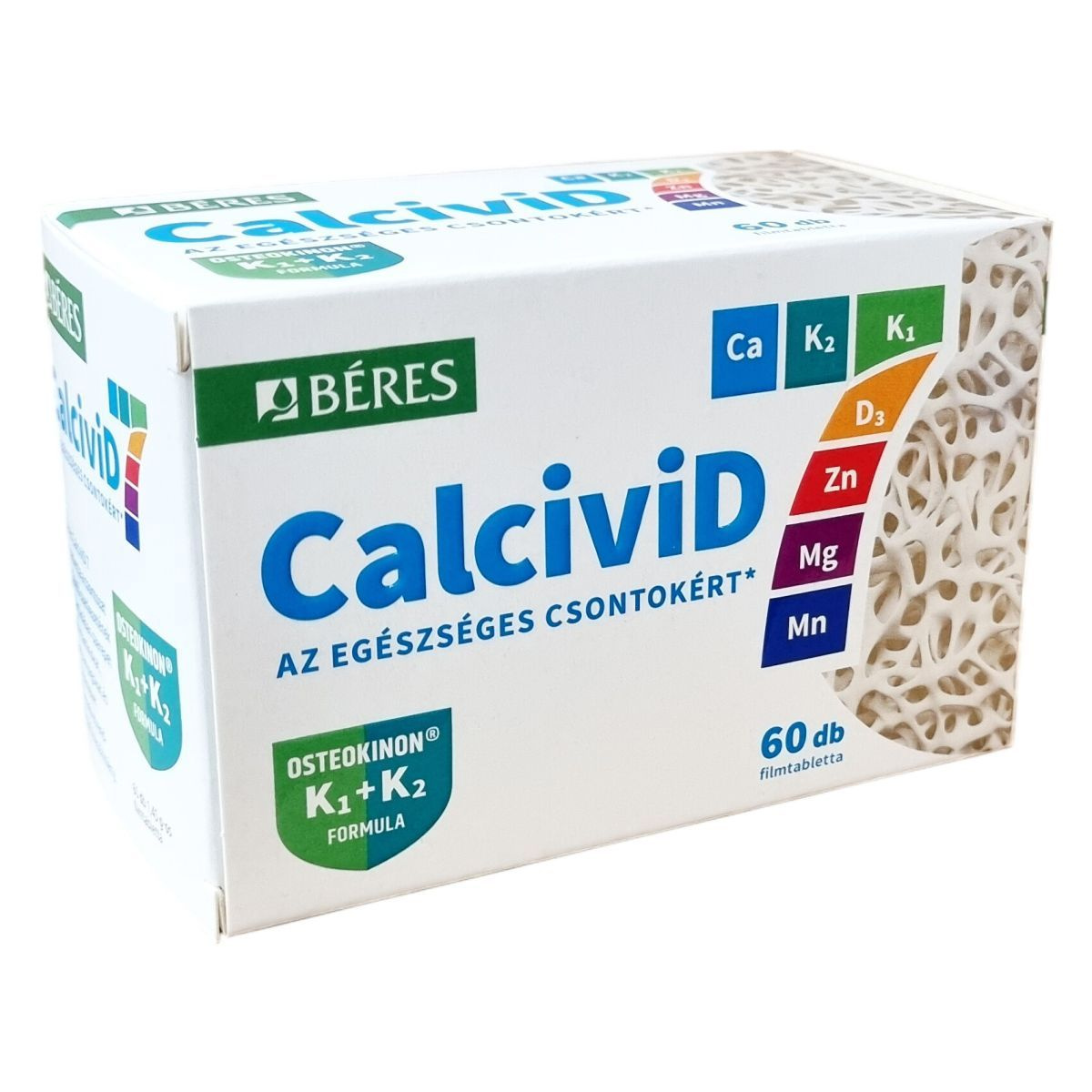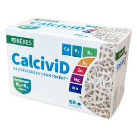 A Béres CalciviD7 filmtabletta olyan étrend-kiegészítő készítmény, amely a csontozat megfelelő szerkezetének fenntartásában szerepet játszó vitaminokat, ásványi anyagokat és nyomelemeket tartalmaz. Kiemelt összetevője a kalcium, amely a csontjaink egyik fő alkotórésze, és szükséges a normál csontozat fenntartásához. A D3-vitamin hozzájárulhat az egészséges csontozat és a vér normál kalciumszintjének fenntartásához. A magnézium, K-vitamin (mind K1, mind K2 formában), cink és mangán támogatják a normál csontozat megtartását. A készítmény különösen ajánlott a kevés vagy egyáltalán nem fogyasztó tejtermékeket fogyasztók számára, fiatal felnőtteknek az egészséges csontozat fenntartásához, valamint várandós és szoptató édesanyáknak, menopauza idején lévő és azt követő hölgyeknek. Szintén javasolt ülő vagy mozgásszegény életmódot folytatóknak és gyakori fogyókúrázóknak, akiknél hiányos táplálkozás áll fenn. A kalcium hozzájárulhat a csont ásványianyag-veszteségének csökkentéséhez változókor utáni nőknél, különösen az 50 év felettieknél, akiknek napi bevitele legalább 1200 mg valamennyi forrásból. A csontritkulás miatti csonttörések kialakulásában több tényező szerepel, így egyetlen kockázati tényező változtatása nem feltétlenül csökkenti a betegség kockázatát, ha más okok is közrejátszanak.