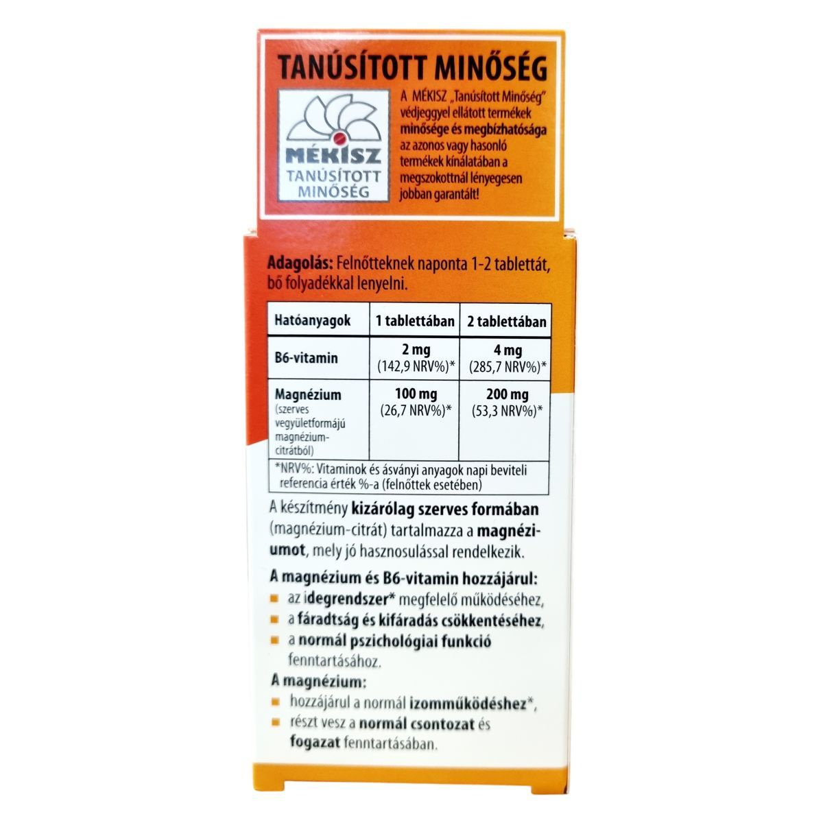 A készítmény kizárólag szerves formában (magnézium-citrát) tartalmazza a magnéziumot, amely jó hasznosulással rendelkezik. A magnézium és a B6-vitamin hozzájárul az idegrendszer megfelelő működéséhez, a fáradtság és kifáradás csökkentéséhez, valamint a normál pszichológiai funkció fenntartásához. A magnézium részt vesz a normál izomműködés, továbbá a csontozat és fogazat fenntartásában. A termék magyar fejlesztésű és gyártású, ISO 22000 és Jó Gyártási Gyakorlat (GMP) szerint tanúsított élelmiszerbiztonsági rendszerben készül.
