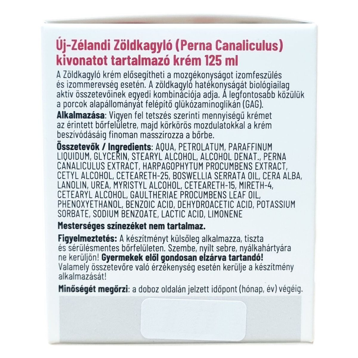 A zöldkagyló krém értékes hatóanyagai révén elősegítheti a mozgékonyságot izomfeszülés, izommerevség esetén.