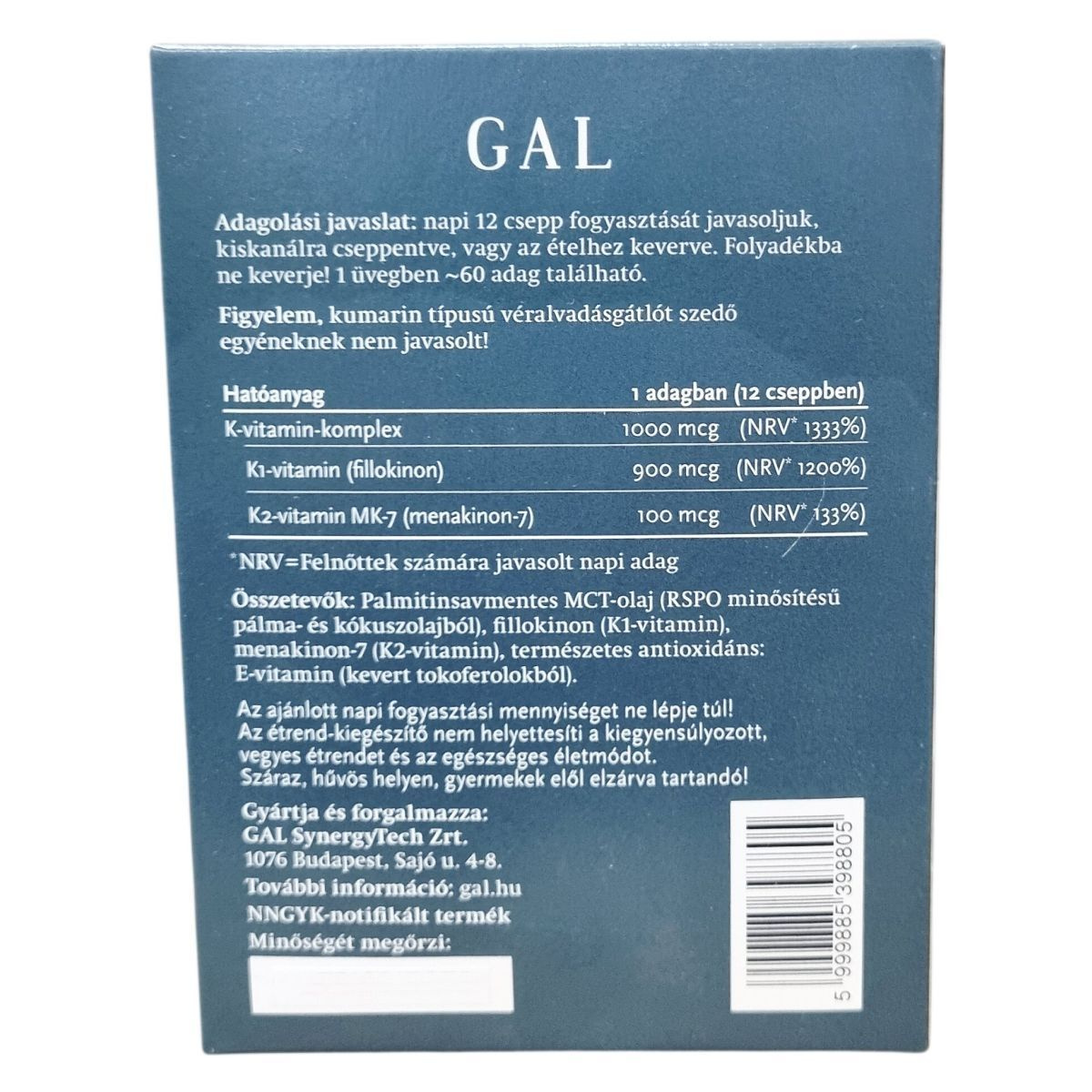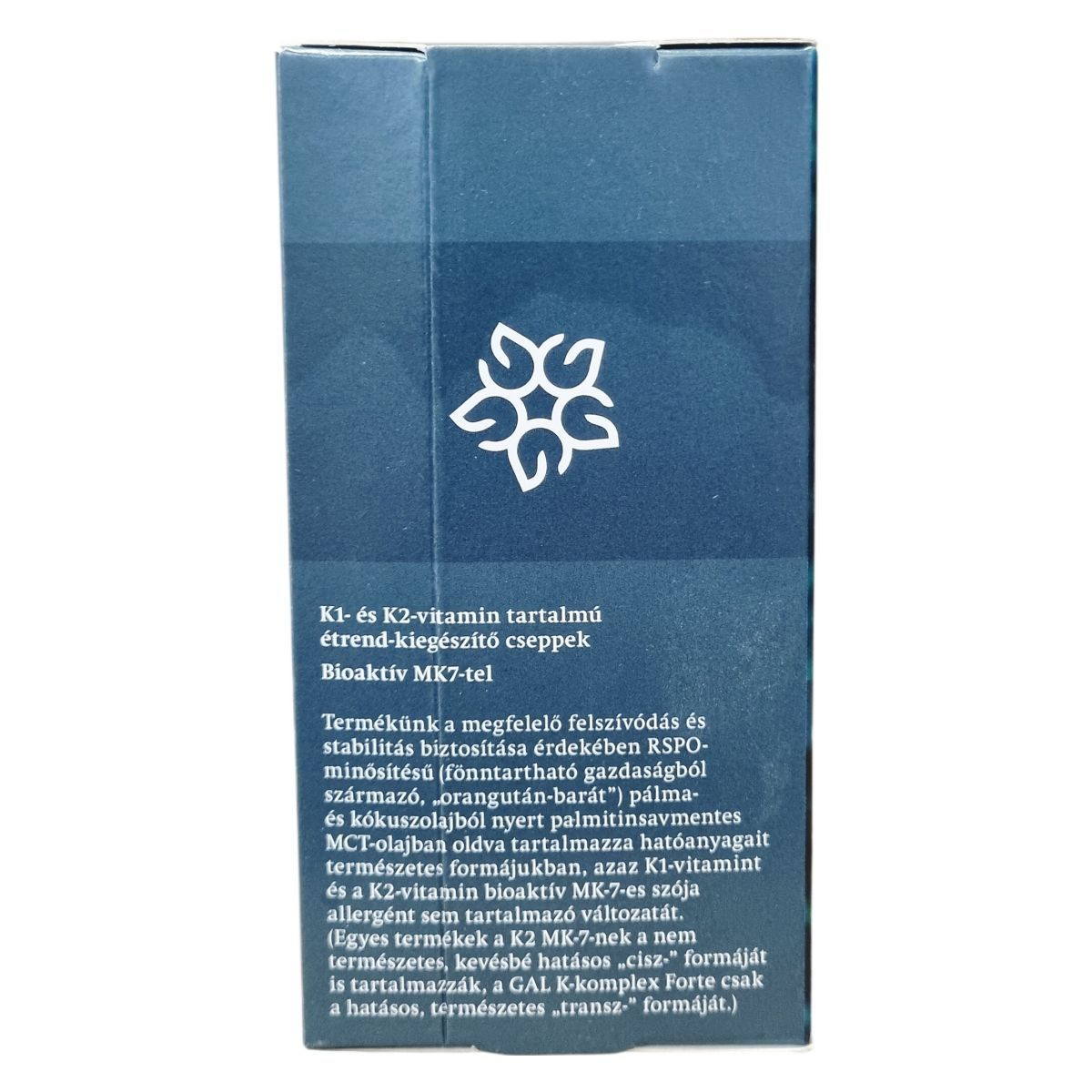A termék RSPO-minősítésű, fenntartható gazdaságból származó („orangután-barát”) pálma- és kókuszolajból nyert palmitinsavmentes MCT-olajban oldva tartalmazza hatóanyagait természetes formájukban, vagyis K1-vitamint és a bioaktív MK-7-es K2-vitamint. A K2-vitamin formája kizárólag a természetes, hatásos „transz-” változat, ellentétben egyes más termékekkel, amelyek tartalmazhatnak kevésbé hatékony „cisz-” formát is. A termék megfelel a modern minőségi elvárásoknak, és allergénmentes változatban készült.