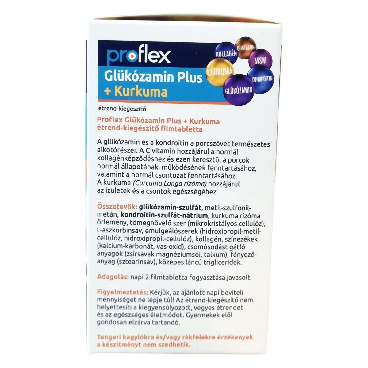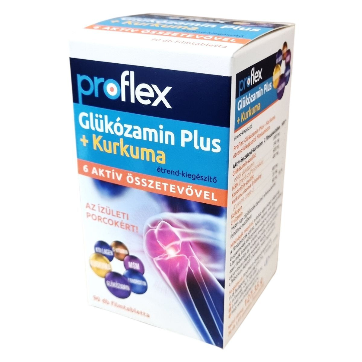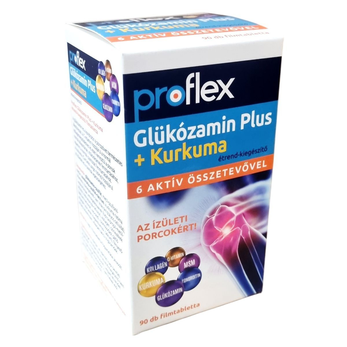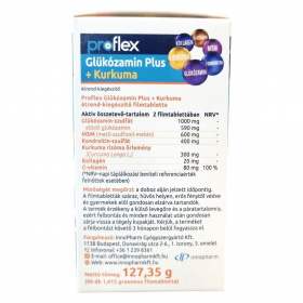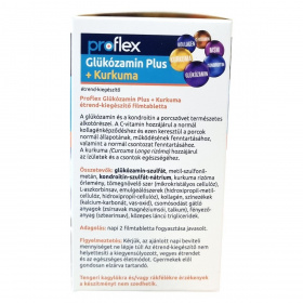 A glükózamin és a kondroitin a porcszövet természetes alkotórészei. A C-vitamin hozzájárulhat a normál kollagénképződéshez, amellyel segítheti a porcok normál állapotának és működésének fenntartását, valamint támogathatja a normál csontozatot. A kurkuma (Curcuma Longa rizóma) az ízületek és csontok egészségének megőrzéséhez járulhat hozzá. Az étrend-kiegészítő 6 aktív összetevőt tartalmaz: kollagén, C-vitamin, MSM (metil-szulfonil-metán), kurkuma, kondroitin és glükózamin, melyek együttműködése révén támogathatják az ízületi porcok egészségét. A termék nettó tömege 127,35 g, mely 90 db 1,415 grammos filmtablettát tartalmaz. A propflex Glükózamin Plus + Kurkuma étrend-kiegészítő magyar gyártó által készült, minőségét a doboz alján jelzett időpontig őrzi meg.