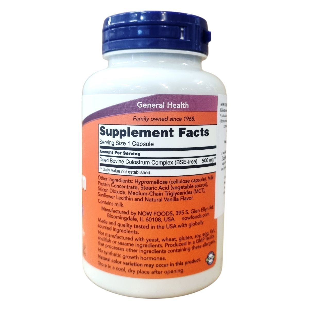 A now® Colostrum 500 mg egy étrend-kiegészítő, mely természetes módon előforduló immunoglobulinokat és laktoferrint tartalmaz marhakezdeményből. A termék BSE-mentes alapanyagból készül, és minőségét az USA-ban, globálisan beszerzett összetevőkből végzett minőségellenőrzés garantálja. A készítmény GMO-mentes, mesterséges növekedési hormonoktól mentes, természetes színváltozások előfordulhatnak. A kapszula növényi alapú, a termék mentes számos gyakori allergéntől és nem tartalmaz többek között élesztőt, búzát, glutént, szóját, tojást, halat, kagylót vagy szezámmagot.