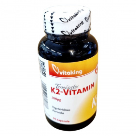 A Vitaking K2-vitamin étrend-kiegészítő 100µg K2-vitamint tartalmaz kapszulánként, amely az „all trans” MK-7 formában van jelen. A termék vegetáriánus formula, amely 90 kapszulát tartalmaz. A K2-vitamin hozzájárulhat a csontok és az érrendszer egészségének támogatásához. Az összetevők között szerepelnek tömegnövelő szerek, mint az izomalt és a mikrokristályos cellulóz, valamint a menakinon-7. A termék forgalmazója a Vitaking Kft., és a notifikációs száma 33329/2023.